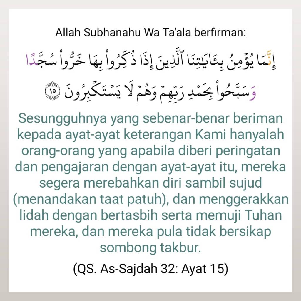{ يَٰٓأَيُّهَا ٱلَّذِينَ ءَامَنُوٓاْ إِذَا نُودِيَ لِلصَّلَوٰةِ مِن يَوۡمِ ٱلۡجُمُعَةِ فَٱسۡعَوۡاْ إِلَىٰ ذِكۡرِ ٱللَّهِ وَذَرُواْ ٱلۡبَيۡعَۚ ذَٰلِكُمۡ خَيۡرٞ لَّكُمۡ إِن كُنتُمۡ تَعۡلَمُونَ } [Surah Al-Jumuʿah: 9] Abdullah Muhammad Basmeih: Wahai orang-orang yang beriman! Apabila diserukan azan (bang) untuk mengerjakan sembahyang pada hari Jumaat, maka segeralah kamu pergi (ke masjid) untuk mengingati Allah (dengan mengerjakan sembahyang jumaat) dan tinggalkanlah berjual-beli (pada saat itu); yang demikian adalah baik bagi kamu, jika kamu mengetahui (hakikat yang sebenarnya),